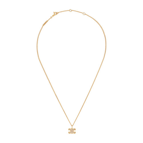 CELINE/赛琳 22新款 TRIOMPHE系列 女士金色黄铜配水钻标志形状调节项链460GB6BZI.35OR