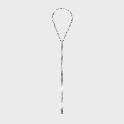 CELINE赛琳思琳 22年秋冬 男士 项链 BOY DOLL复古铑银色饰面黄铜和水钻领带式项链 460DI6BRS.