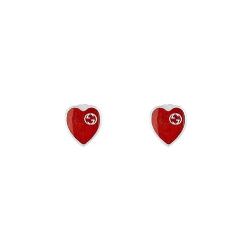 GUCCI古驰 22年秋冬 女士 互扣式双G珐琅爱心耳环 645547 J8410 8166