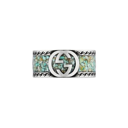 GUCCI/古驰 Icon系列 黑色合成刚玉戒环之上装饰有18K金经典图案和彩色宝石点缀男女通用宝石戒指 527095J8F778522