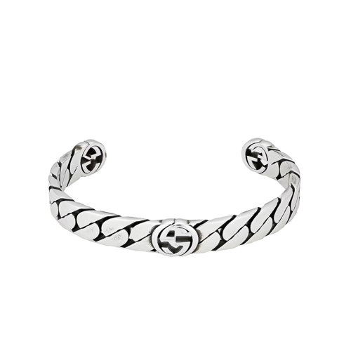 GUCCI/古驰 22春夏新款 纯银做旧双G和条纹图案手镯661528J84000728