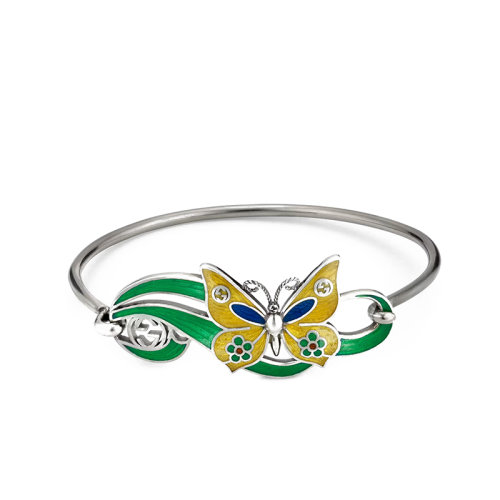 GUCCI/古驰 22春夏新款 925纯银饰互扣式钩扣双G黄绿蓝三色珐琅蝴蝶手镯679875J84108519