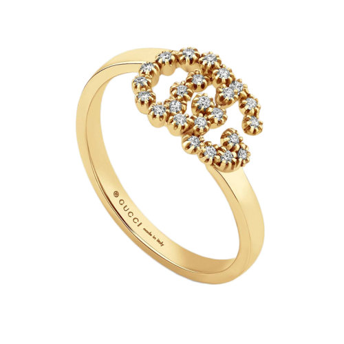 GUCCI/古驰 GG Running系列 经典双G镶有钻18k金黄金戒指 481650J85408000