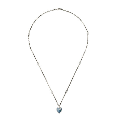 GUCCI/古驰 925银浅蓝色珐琅银色双G心型吊坠项链645545J89B48490
