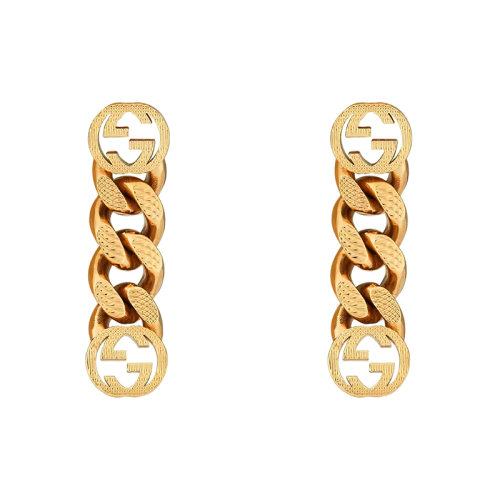 Gucci/古驰 22新款 aria系列 女士黄色GG细节马衔锁链形状耳环702524I46008005