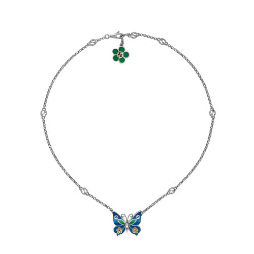 GUCCI/古驰 22春夏新款 纯银蓝绿黄蝴蝶绿色花朵珐琅互扣式双G吊坠项链679988J89B48520