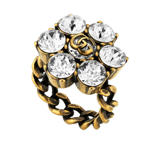 GUCCI/古驰 镀金金属Double G细节饰有水晶戒指 645682J1D508062