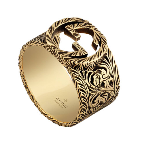 GUCCI/古驰 男女通用经典复古雕刻花纹图案GG镂空细节经过陈年处理的18k金黄金戒指 579797J85000718