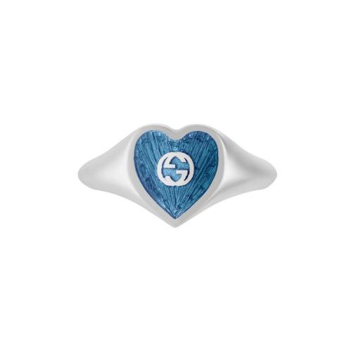 GUCCI古驰 22年秋冬 女士 互扣式双G珐琅爱心戒指 645544 J8410 8183