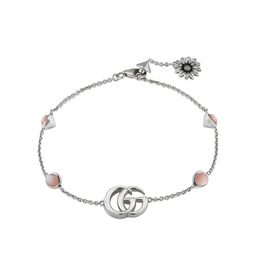 GUCCI/古驰 经典925银双G花朵装饰嵌有粉色珍珠母贝复古手链527393J84408164