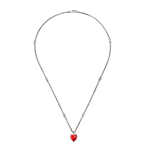 GUCCI/古驰 925银红色珐琅银色双G心型吊坠项链?645545J89B41192