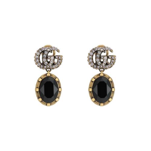 GUCCI古驰 22年秋冬 女士 黑色水晶双G耳环 629659 I4769 8061
