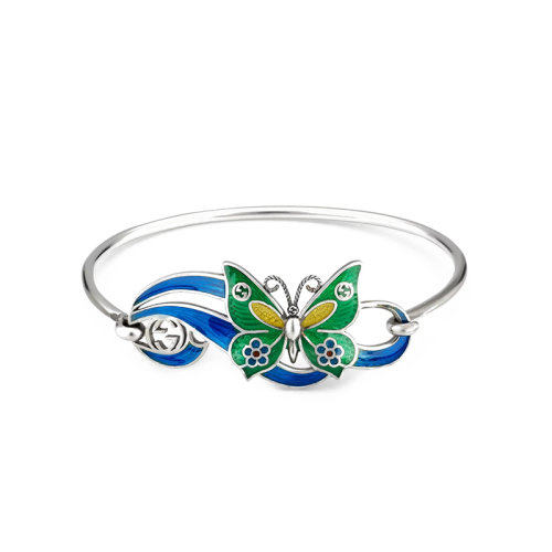 GUCCI/古驰 22春夏新款 925纯银饰互扣式钩扣双G绿蓝黄三色珐琅蝴蝶蓝色手镯679875J84108521