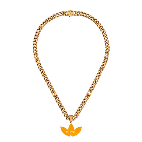 GUCCI/古驰 22新款阿迪达斯联名系列 男女同款黄金色调金属黄色珐琅三叶草徽标吊坠马衔索链项链702895J16318083