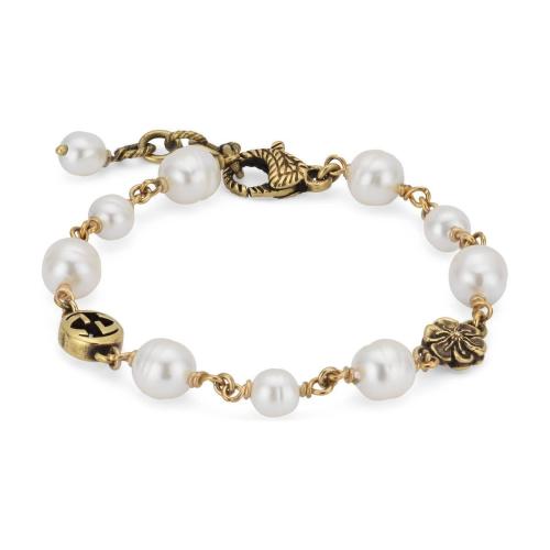 GUCCI古驰 22年秋冬 女士 互扣式双G花朵珍珠手镯 664352 I4620 8078