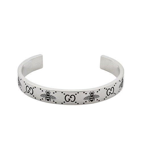 GUCCI/古驰 22新款 男女同款925银GG蜜蜂刻花做旧银色调宽9毫米手镯?728296J84000728
