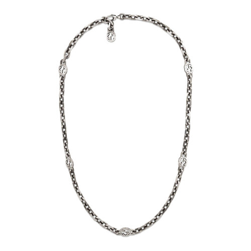 GUCCI/古驰 经典款 男女同款925纯银互扣式双G做旧复古银项链616941J84000811