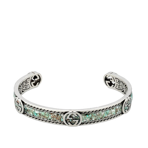GUCCI/古驰 925银浅蓝色和灰色珐琅GG图案手镯645570J84109071
