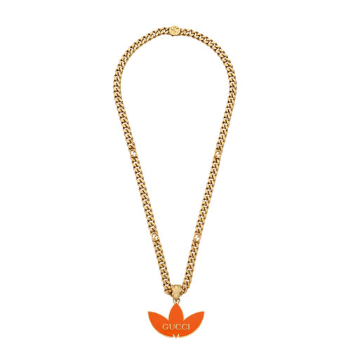 GUCCI/古驰 22新款阿迪达斯联名系列 男女同款黄金色调金属橙色珐琅三叶草徽标吊坠马衔索链项链702926J16318082