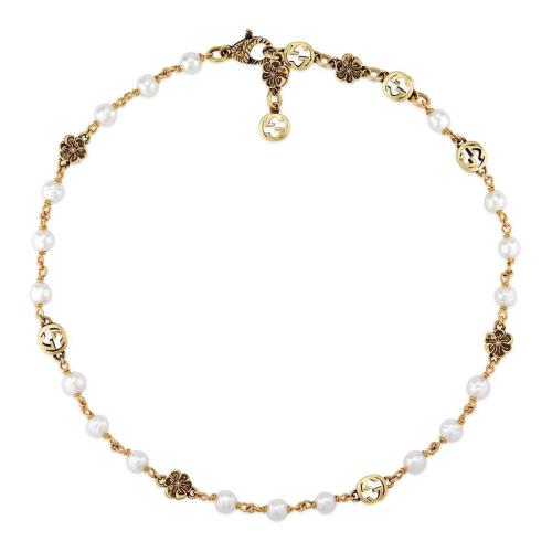 GUCCI古驰 22年秋冬 女士 互扣式双G花朵珍珠项链 661125 I4620 8078