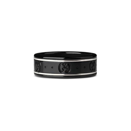 GUCCI古驰 22年秋冬 男士 经典窄边白金戒指,配以黑色刚玉 225985 I19A1 8061