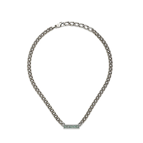 GUCCI/古驰 22春夏新款 925纯银灰绿色珐琅马衔索链徽标项链678713J84109071