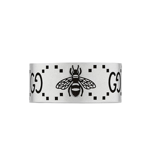 GUCCI/古驰 22新款 男女同款925银GG蜜蜂刻花宽9毫米宽版戒指728304J84000728