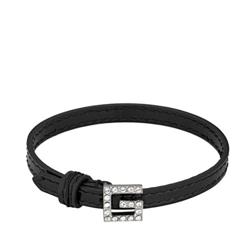 GUCCI/古驰 经典款 男女同款黑色皮革镶嵌白色晶体方形G搭扣手镯623237J17848162