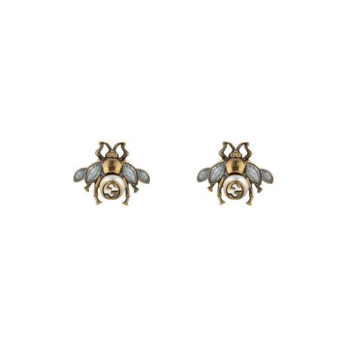 GUCCI古驰 22年秋冬 女士 饰水晶和珍珠蜜蜂耳环 489894 J1D51 8062