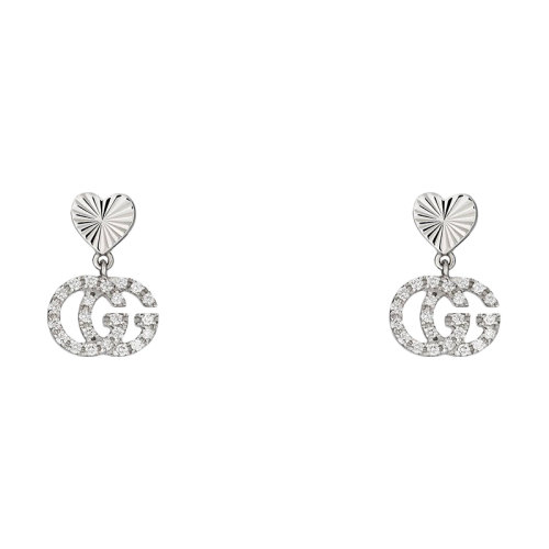 GUCCI/古驰 GG Running系列 18K金白金双G镶钻吊坠钻石耳环 648602J85689066