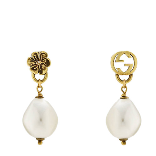 GUCCI/古驰 金色金属花朵珍珠吊坠GG细节耳环661121I46208078