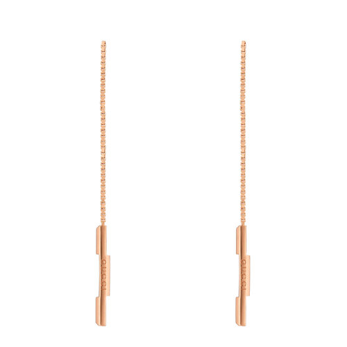 GUCCI/古驰 Link to Love系列 18k金玫瑰金条形Gucci铭文吊坠耳环662115J85005702