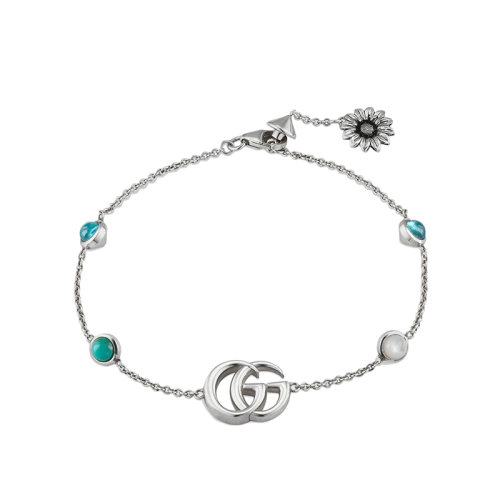 GUCCI/古驰 经典925银双G镶嵌白色珍珠母贝绿松石蓝色托帕石复古花朵手链527393J84748517