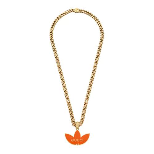 GUCCI古驰 22年秋冬 女士 adidas x Gucci珐琅三叶草徽标吊坠马衔索链项链 702926 J1631 8082
