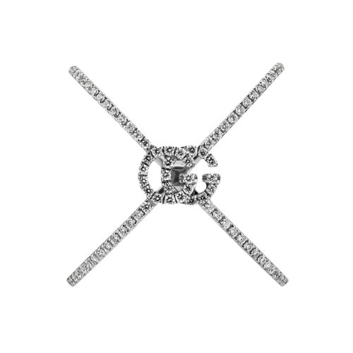 GUCCI/古驰 GG Running 18k金白金镶有钻石双G细节十字戒指 581978J85409066