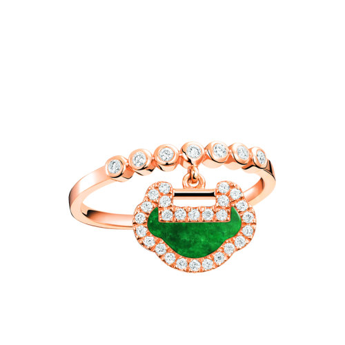QEELIN/麒麟珠宝 YUYI系列 18K金玫瑰金小巧如意镶嵌钻石翡翠戒指指环YY-RI0002C-RGDGJE