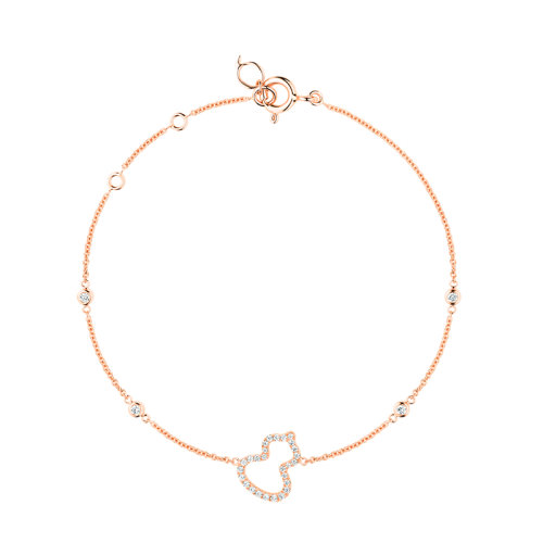 QEELIN/麒麟珠宝 WULU系列 18K金玫瑰金镶嵌钻石小号镂空葫芦形状手链WU-BR0016A-RGD