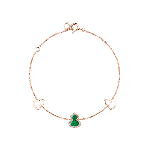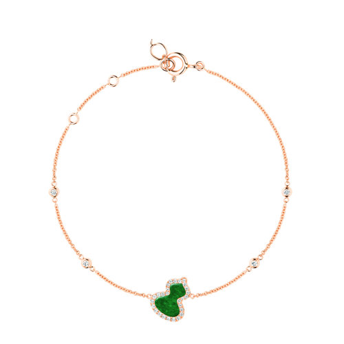 QEELIN/麒麟珠宝 WULU系列 18K金玫瑰金镶嵌钻石翡翠小号葫芦手链WU-BR0016B-RGDGJE