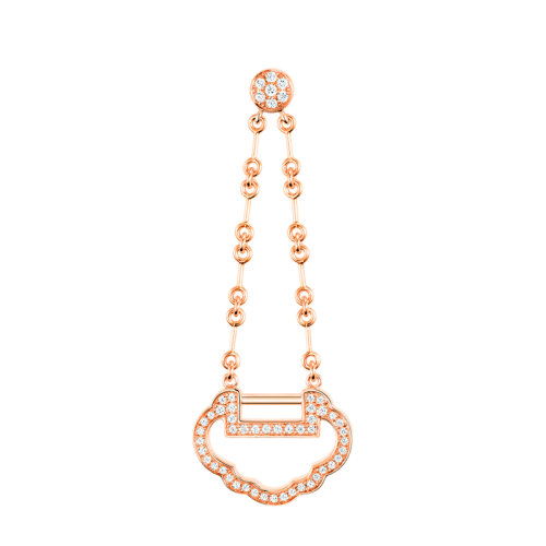 QEELIN/麒麟珠宝 YUYI系列 18K金玫瑰金镶嵌钻石小号镂空如意形状耳坠耳环YY-030-OER-RGD