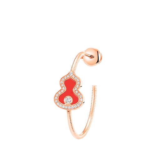 QEELIN/麒麟珠宝 22春夏新款Wulu系列 18K金玫瑰金葫芦造型镶嵌钻石红玛瑙单只耳环WU-040-LGHER-RGDRA