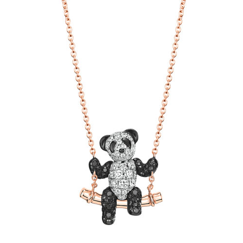 QEELIN/麒麟珠宝 22新款Bo Bo系列 18K金玫瑰金钻石黑钻石熊猫荡秋千吊坠项链BB-040-WWFNL-RGD