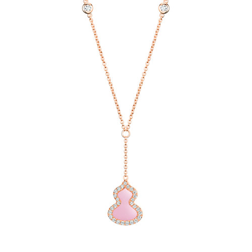 QEELIN/麒麟珠宝 WULU系列 18K金玫瑰金镶嵌钻石粉红蛋白石葫芦吊坠项链WU-NL0009D-RGDPO