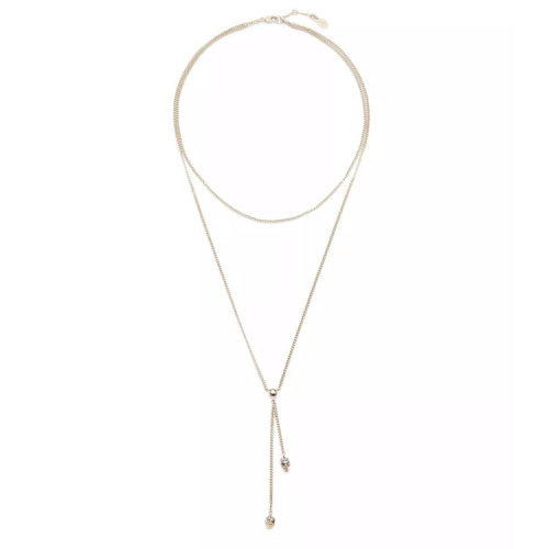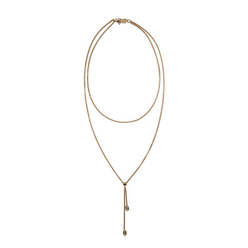Alexander McQueen/亚历山大麦昆 女士金色双层链饰骷髅头标志项链吊坠 $500716J160K7285