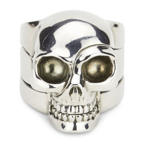 Alexander McQueen/亚历山大麦昆 时尚百搭 黄铜 可拆分 男士银色骷髅头戒指/指环 554499J160Y0446 HKY210303