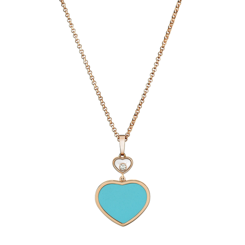 Chopard/萧邦 女士经典款快乐的心系列 18K金玫瑰金镶嵌绿松石心形镶钻项链 797482-5401