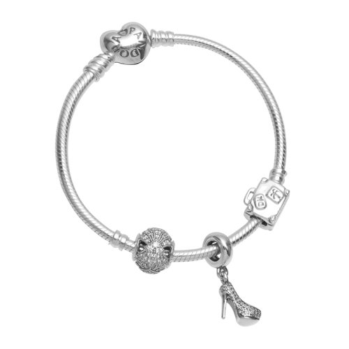 PANDORA/潘多拉 让我们一起旅行银色高跟鞋旅行箱串珠蛇骨链手链手镯 PAND00041