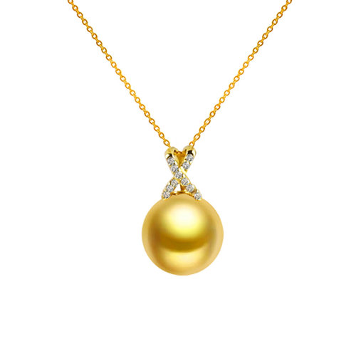zhuella/珠艾乐 南洋金珠吊坠项链 钻石轻奢气质 几何造型