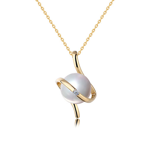zhuella/珠艾乐 星轨系列 日本海水珠18k金钻石星轨环绕造型项链吊坠