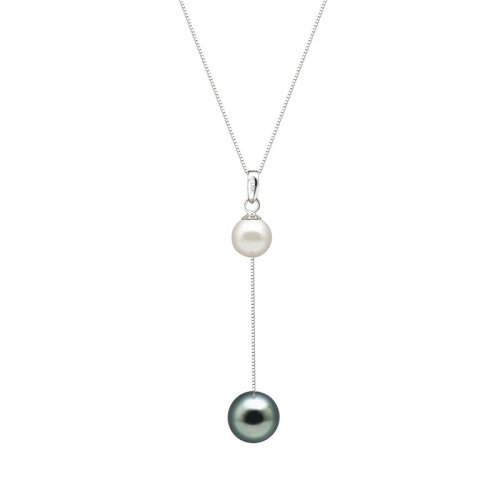 zhuella/珠艾乐 18K金黑白撞色款 大溪地和日本海水珠 吊坠项链
