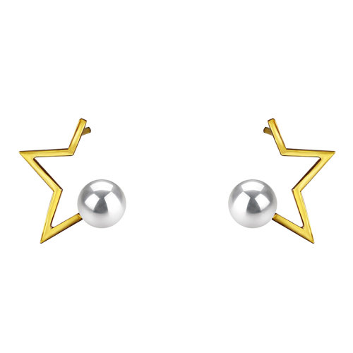 zhuella/珠艾乐 星月系列 5-6mm日本Akoya海水珍珠18k金耳钉